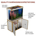 The premium aluminum frame prevents deformation and fading, and also comes with a tri-color LED-equipped cover. The cabinet frame is resistant to tension and torque deformation caused by heavy loads and is corrosion resistant. The cabinet houses the sump filtration system, which includes all pieces needed for installation, as well as a submersible aquatic pump. The sump filtration system features a wet-dry design and designated filter media dividers, allowing for a modular approach when handling the filter media of your choice.