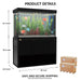 Made of sleek aluminum/glass and includes a cabinet with storage. The fish tank includes a 2-year warranty on the body and cabinet. Electrical units are under warranty for 1 year, and service for spare parts is available for life.