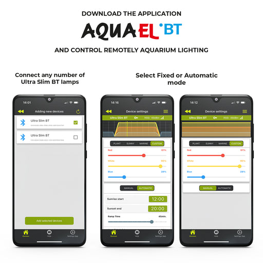 View full detailsThe Aquael Ultra Slim BT is an intelligent LED aquarium lamp that combines advanced lighting control with a sleek, modern design. Controlled throug...