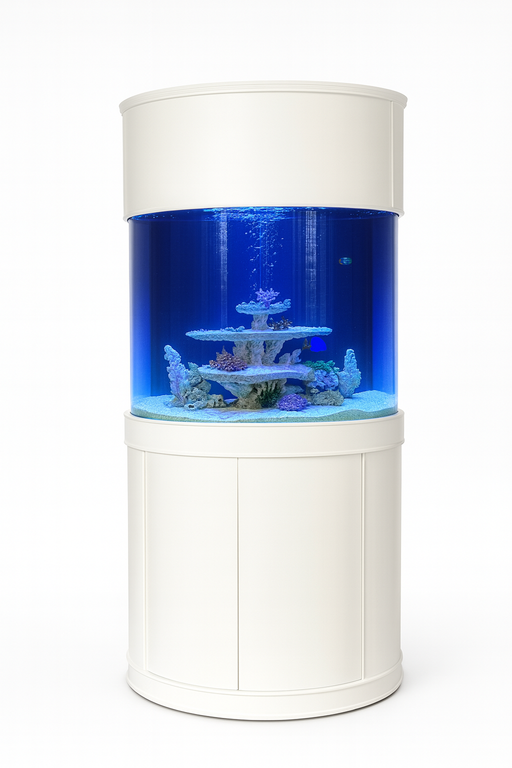 AQUA VIM 90 Gallon 3/4 Cylinder Glass Reef-Ready Aquarium Set in Tulum White